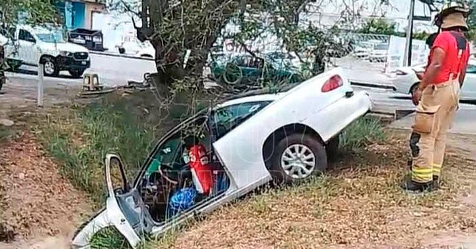 Tampico, Tamaulipas. - Con lesiones en distintas partes del cuerpo que ameritaron su traslado a un hospital, resultó una mujer que perdió el control del volante de su automóvil al tratar de dar una vuelta y terminó cayendo en un canal a cielo abierto en Tampico.