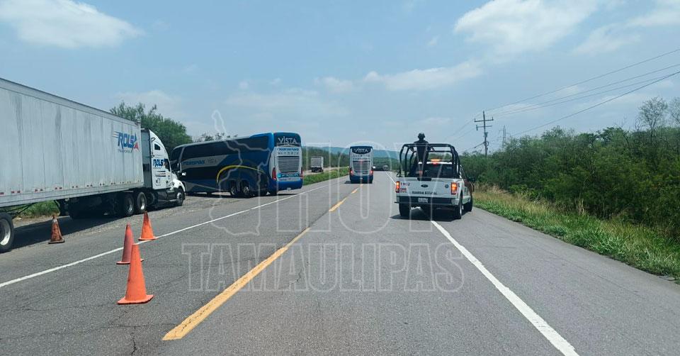 Villagrán, Tamaulipas. - La volcadura de un tráiler que transportaba piñas provocó la obstrucción de ambos carriles en sentido de sur a norte de la Carretera Federal 85 Victoria-Monterrey, a la altura del kilómetro 102, generando complicaciones en la circulación.