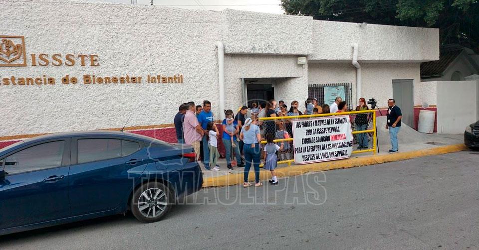 Padres de familia protestan por cierre de guardería del ISSSTE en Reynosa