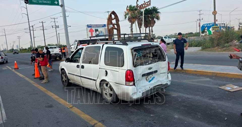 El percance ocurrió a las 7:15 de la mañana de hoy, a la altura del Fraccionamiento San Francisco, donde tres unidades se encontraban detenidas por la luz roja de un semáforo.