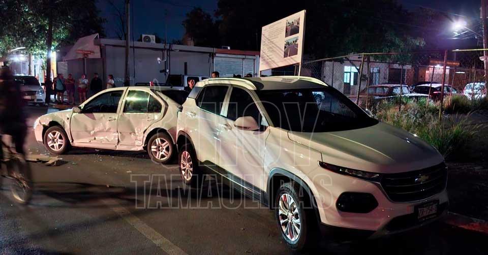 Ciudad Victoria, Tamaulipas. – Un aparatoso accidente vehicular, con un saldo de cuantiosos daños materiales, se registró la noche de este lunes en el primer cuadro de Ciudad Victoria, luego de que un conductor no respetara un señalamiento de alto.