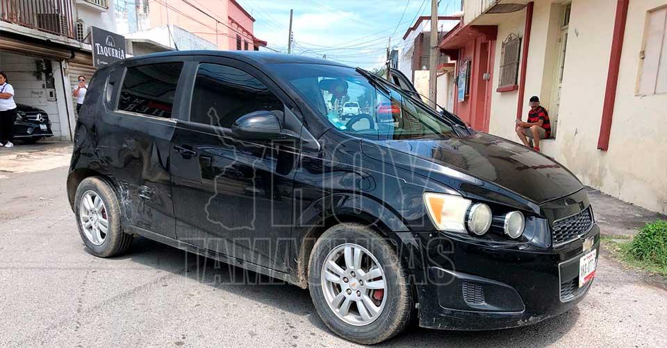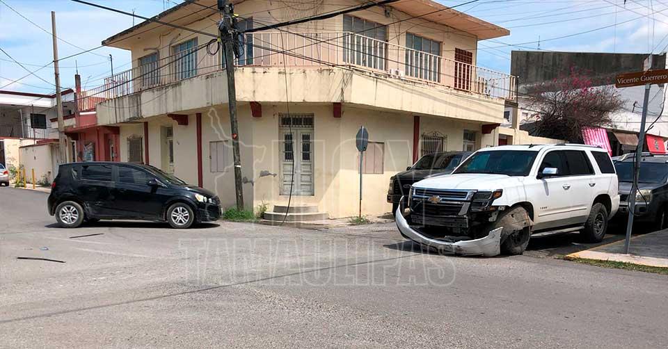 Ciudad Victoria, Tamaulipas. – Un accidente vial en la zona centro de esta capital, se registró esta tarde, luego de que una camioneta tipo Tahoe, blindada, impactara a un vehículo compacto marca Sonic.