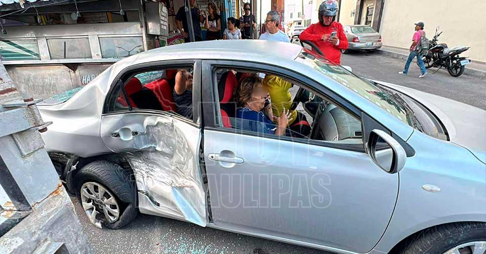 Los lesionados en este percance viajaban en un automóvil Toyota Corolla color gris con placas de Tamaulipas, mismo que fue impactado en el costado derecho por una camioneta Chevrolet color guinda, y proyectado contra el negocio de tacos y tortas de bistec entero.