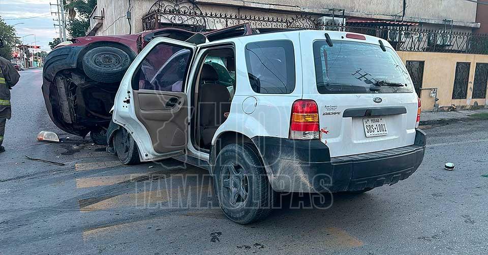 Nuevo Laredo, Tamaulipas.— Tras provocar un aparatoso choque en el que una camioneta estuvo a punto de volcarse, un conductor huyó dejando su vehículo abandonado en un crucero de la colonia Zaragoza en Nuevo Laredo.