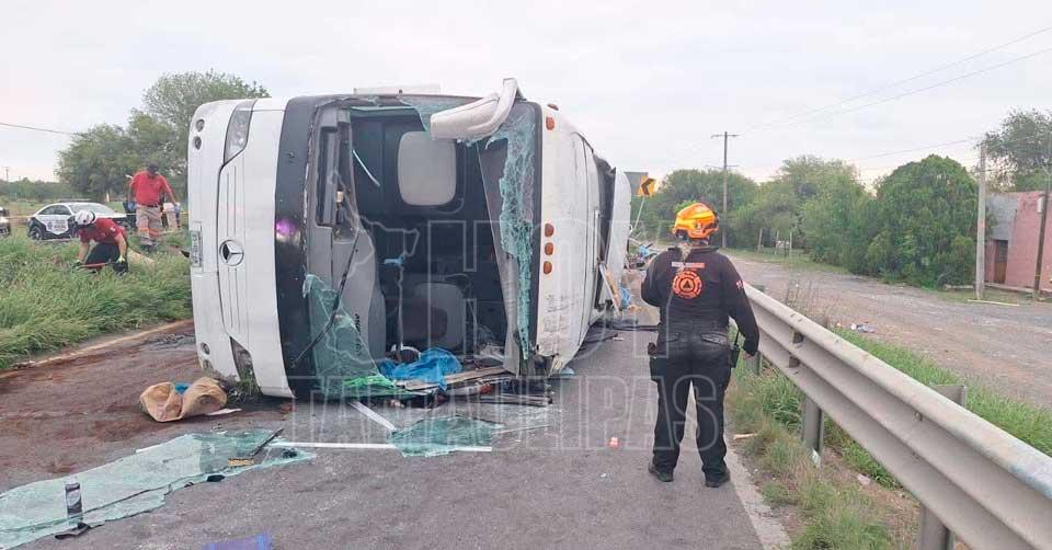 El vehículo siniestrado salió de Escobedo con destino a Tampico cuando, por causas aún no determinadas, perdió el control y volcó.
