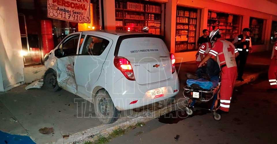 Ciudad Victoria, Tamaulipas. – Un accidente vial se registró en el cruce de las calles 8 y Aldama en Ciudad Victoria, dejando un saldo de tres personas lesionadas y daños materiales en una tienda y dos vehículos.