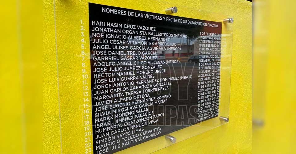 Nuevo Laredo, Tamaulipas. — Como parte de un acto conmemorativo, hoy se develó un listado de víctimas de desaparición forzada por autoridades federales y estatales el año 2018 en Nuevo Laredo, en el Memorial ubicado en la Plaza Primero de Mayo.