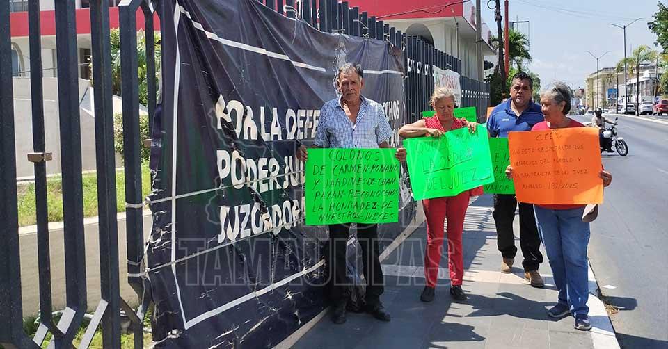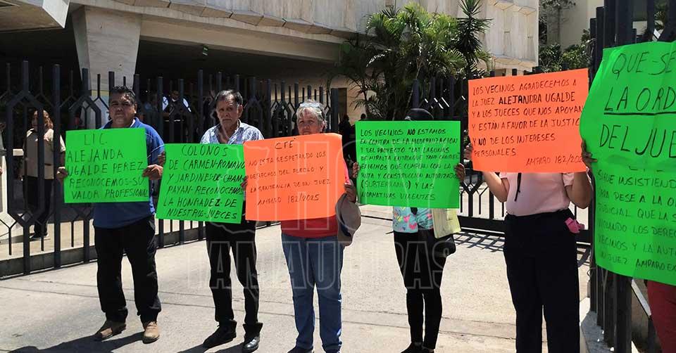 Tampico, Tamaulipas. - Vecinos de las colonias Jardines de Champayán y Carmen Romano volvieron a manifestarse en contra de la Comisión Federal de Electricidad (CFE), acusando a la empresa de desobedecer una orden judicial que, según aseguran, suspende las obras de tendido eléctrico en ambos sectores.