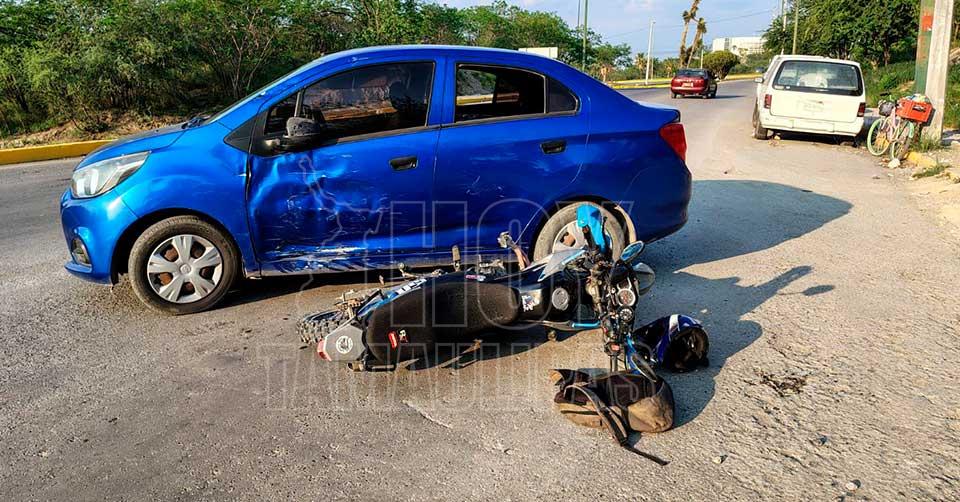 El conductor de la motocicleta se desplazaba en dirección de poniente a oriente cuando un vehículo Chevrolet Beat se le atravesó, provocando el impacto.
