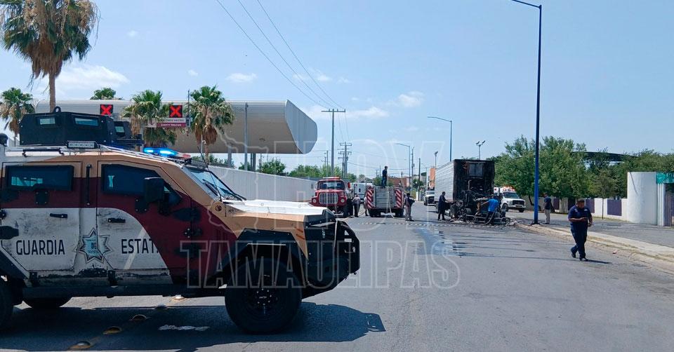 Se incendia tráiler frente a la Aduana de Miguel Alemán; investigan causas