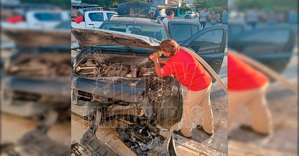 Atiende Bomberos conato de incendio tras choque en Ciudad Victoria