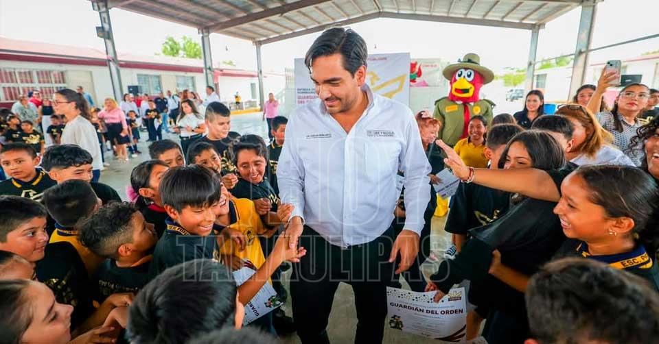 Reynosa, Tamaulipas.-El Presidente Municipal Carlos Peña Ortiz llevó el programa "Guardianes del Orden" a la Escuela Primaria Francisco Javier Mina, donde fueron entregados los nombramientos a 435 alumnos que aseguraron su compromiso con el medio ambiente.