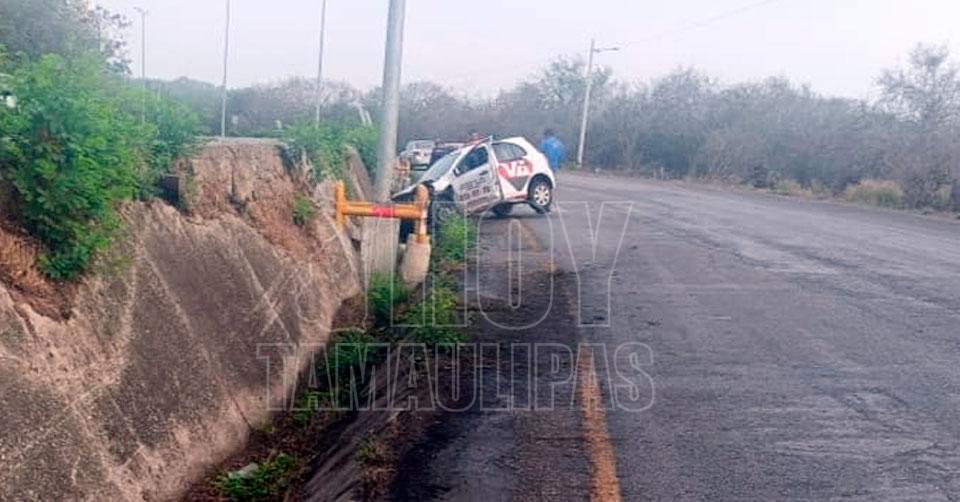 El vehículo resintió daños en el frente, cuando al circular de Madero hacia Altamira el tripulante perdió el control en la curva y se proyectó contra la contención de concreto de la vía estatal, sin que afectara a algún otro vehículo.