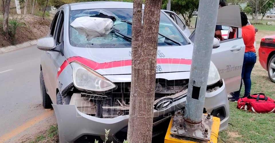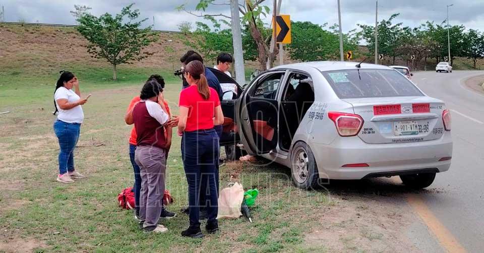 El vehículo terminó por impactarse contra un poste que sostenía una lámpara de alumbrado público, provocando lesiones a tres pasajeras: una mujer adulta que viajaba en el asiento del copiloto y sufrió una lesión ocular, una estudiante de nivel medio superior identificada como alumna del Cetis 78, y una bebé que también iba a bordo.