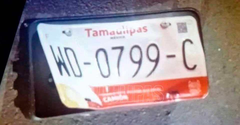 La identificación de la lámina del Estado de Tamaulipas sería WD-0799-C, la cual como se apunta habría quedado tirada en el sitio del impacto de la joven mujer, estando ahora al parecer en poder de las autoridades que han integrado la carpeta de investigación.