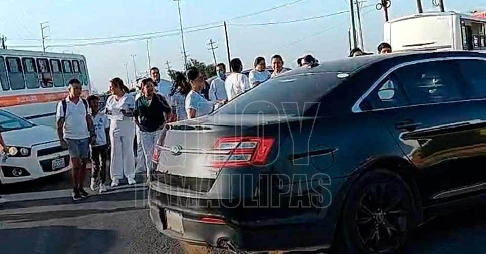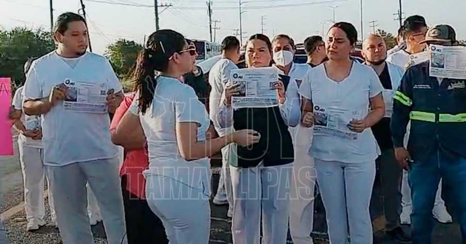 Reynosa, Tamaulipas. - Personal de Enfermería del Hospital 270 cerraron la circulación vial de la carretera Reynosa- San Fernando, la tarde de este martes, en protesta por la desaparición del enfermero Pedro Antonio Lorenzo Martínez.