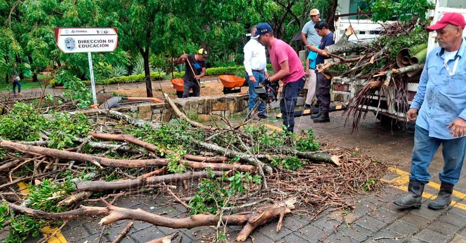 Intensa lluvia tumba árboles y apaga luces en Altamira
