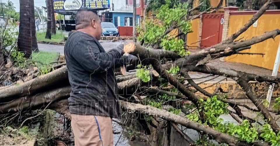 Más temprano, a las 5:35 de la mañana se reportó al Servicio de Emergencias 911 que un árbol había caído en la avenida Faja de Oro entre Potrero de Llano y Vía de Pemex en la colonia Petrolera, acudiendo personal de Servicios Públicos y del Cuerpo de Bomberos, quienes al llegar al sector en efecto encontraron un árbol de trueno en la vía pública, propiedad del Instituto Anglo Mexicano, procediendo a liberar la vialidad.