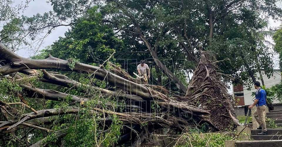 Aguacero en Tampico tumba árbol y cae sobre un edificio de departamentos