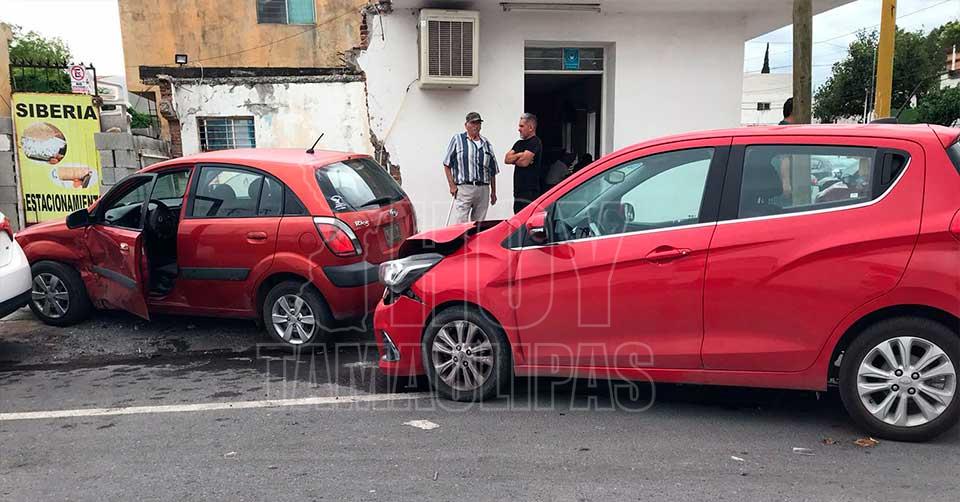 Ciudad Victoria, Tamaulipas. - Un accidente vial se registró esta tarde en la calle nueve Mina, cuando un automóvil Kia cruzó sin la debida precaución y fue impactado por un Chevrolet Spark color rojo.