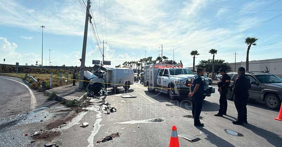 Reynosa, Tamaulipas.— Un trágico accidente vial ocurrido la mañana de este domingo cobró la vida de un hombre que conducía una camioneta repartidora de agua purificada, luego de ser aplastado por los tanques que transportaba. El percance ocurrió sobre el boulevard Hidalgo, a escasos metros de la Avenida Los Pinos y del puente del Caracol, en el periférico de la ciudad.