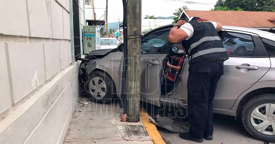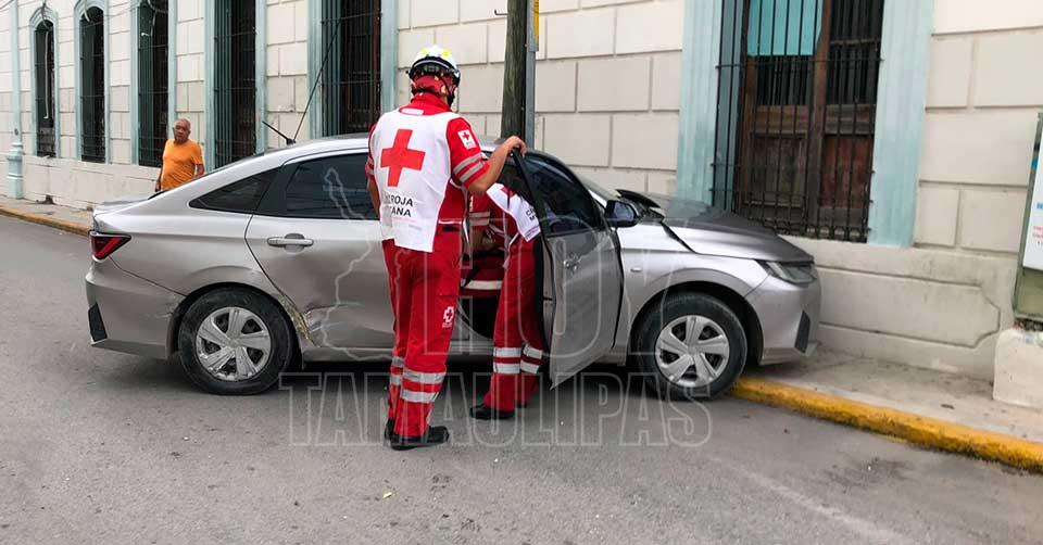 Ciudad Victoria, Tamaulipas. - Una mujer resultó lesionada y fue trasladada a un hospital, luego de protagonizar un accidente automovilístico en el cruce del 18 Hidalgo, en pleno centro de la ciudad.