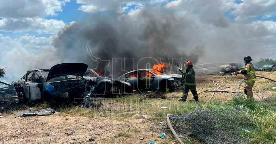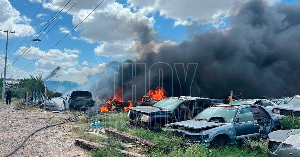 Nuevo Laredo, Tamaulipas. — Un incendio consumió un total de 15 vehículos en el deshuesadero conocido como "Los Toros 2", ubicado en el Bulevar Universidad, cerca del Segundo Anillo Periférico, al poniente de Nuevo Laredo.