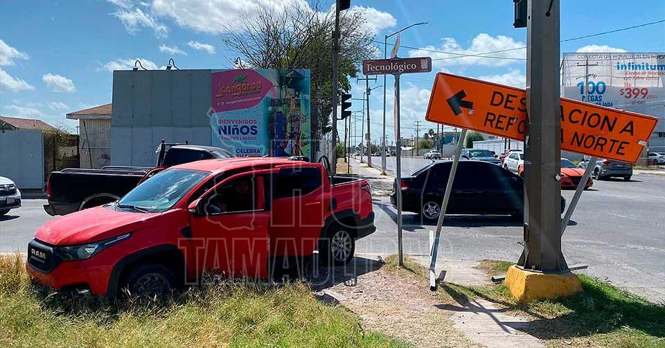 Intenta ganarle al semáforo y causa choque en Nuevo Laredo