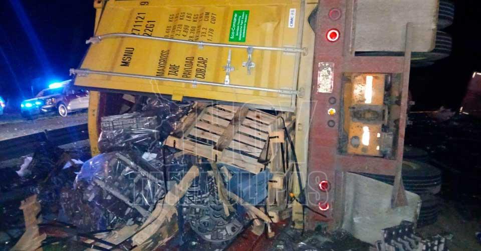 Testigos indicaron que el tráiler del cual se desprendió el contenedor abandonó la escena.