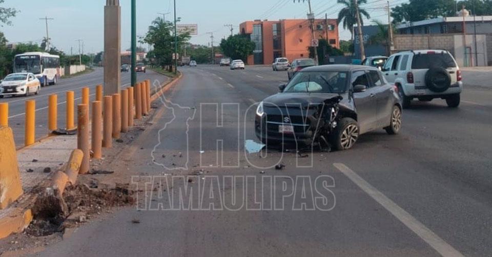 Destrozó su automóvil al chocar con postes de contención de un semáforo en Altamira