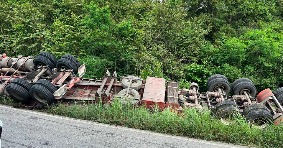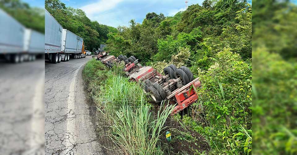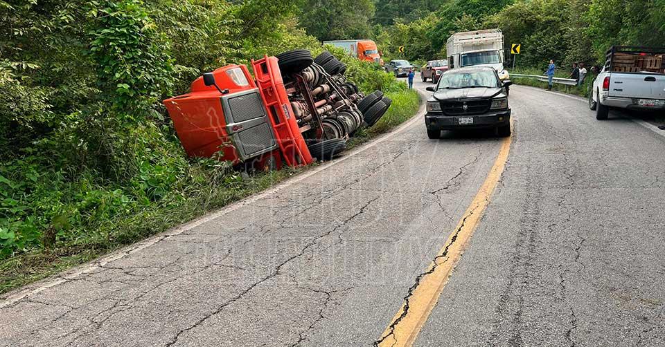 Volcadura de tráiler en la cuesta de Llera provoca afectación vial