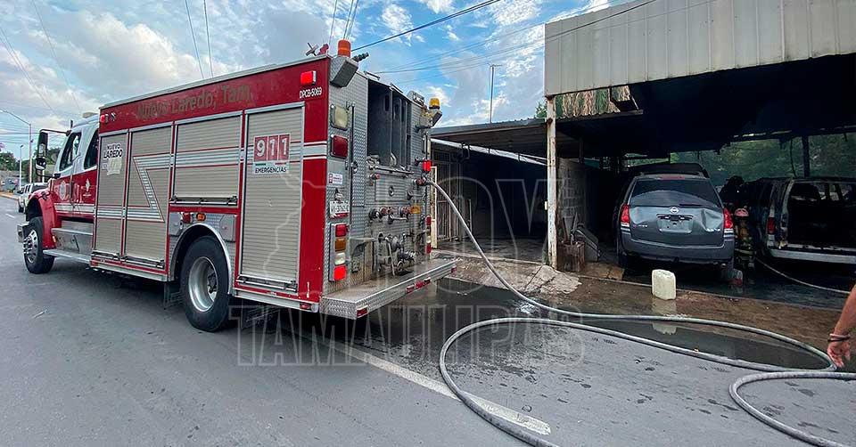 Nuevo Laredo, Tamaulipas. — Una camioneta se incendió mientras le realizaban reparaciones en un taller mecánico, ubicado en la colonia Guerrero de Nuevo Laredo. Las llamas y la radiación afectaron al menos a otras dos unidades que se encontraban en el lugar.