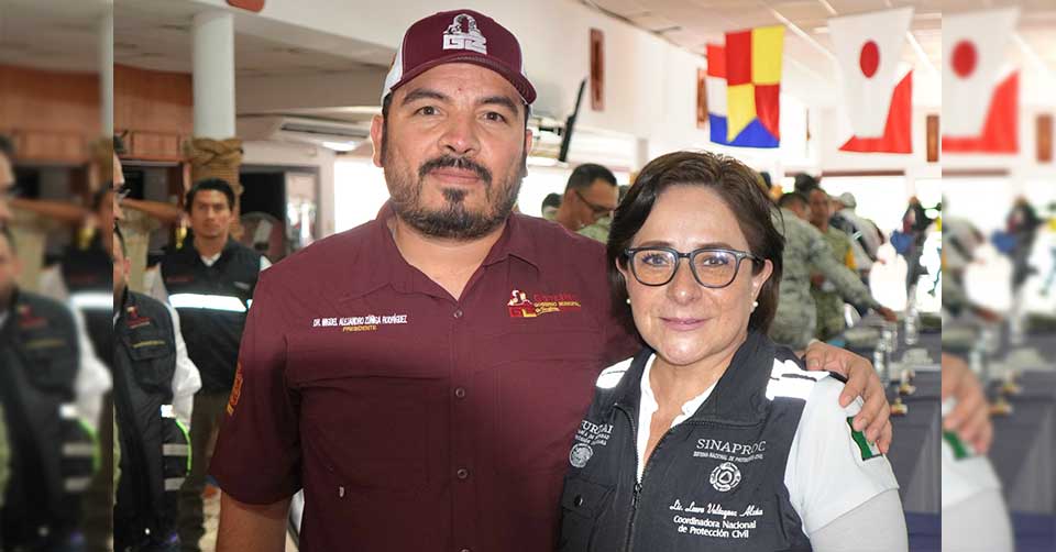 González, Tamaulipas. - El presidente Municipal de González, Dr. Miguel Alejandro Zúñiga Rodríguez, participó hoy en la cuarta reunión de trabajo para la seguridad y recuperación de la región sur de Tamaulipas celebrada en Ciudad Madero. El encuentro contó con la presencia de la Coordinadora Nacional de Protección Civil, Lic. Laura Velázquez Alzúa, y el Gobernador de Tamaulipas, Dr. Américo Villarreal Anaya, junto a alcaldes de Tampico, Madero y Altamira así como autoridades de la SEDENA, Secretaría de Marina, Secretaría de Recursos Hidráulicos, CONAGUA y Protección Civil Estatal. Lo anterior para fortalecer las acciones de apoyo tras el impacto de la Tormenta Tropical Barry.