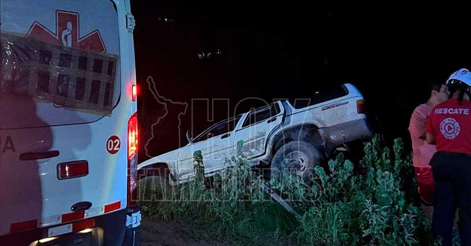 Según versiones, la camioneta posiblemente no advirtió la presencia del tráiler de frente y, al intentar maniobrar, salió del camino.