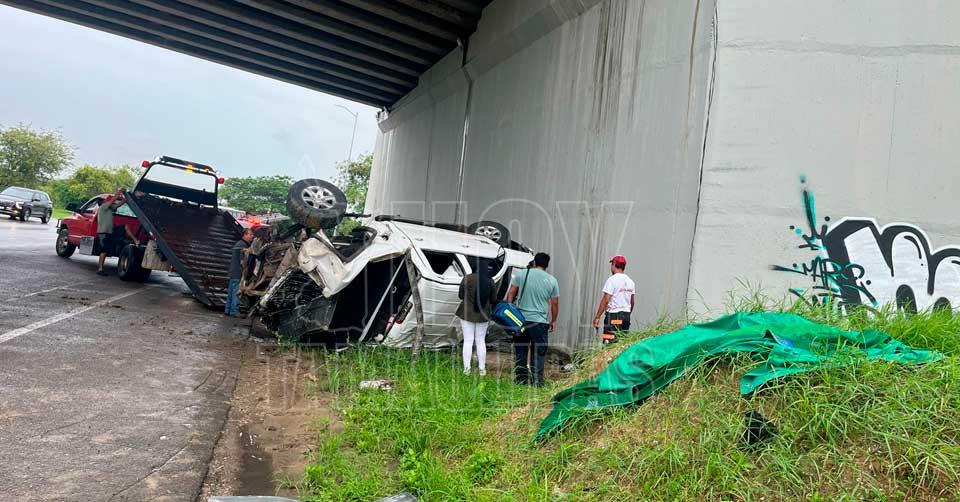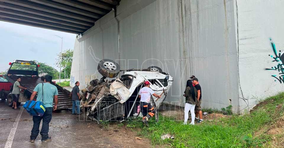 El percance fue atendido por peritos de Tránsito de Altamira, quienes informaron que el conductor perdió el control del vehículo tras derrapar sobre el pavimento mojado, presuntamente a causa de la lluvia. La unidad derribó parte del barandal de contención y se precipitó desde una altura considerable.