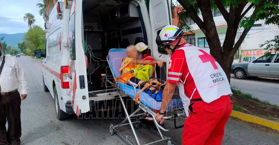 Ciudad Victoria, Tamaulipas. - Un hombre de 88 años resultó lesionado esta mañana luego de ser atropellado por un motociclista cuando intentaba cruzar la Calzada General Luis Caballero sin precaución, a la altura de la calle Luis Castro Bermúdez, en la colonia Del Maestro, frente a la tienda de materiales Helmax.