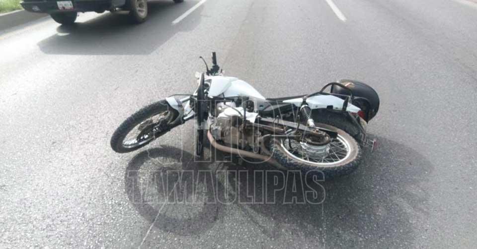 Motociclista resulta lesionado tras derrapar en la carretera a Río Bravo