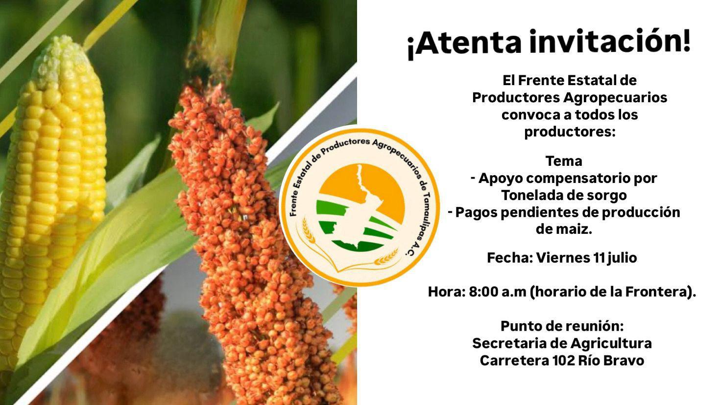 El Frente Estatal de Productores Agropecuarios lanzó la invitación a los productores de sorgo y de maíz a reunirse el viernes a las 8:00 de la mañana (horario de la frontera) en la Carretera 102 Río Bravo para manifestarse nuevamente después de los bloqueos de esta semana que se extendieron por más de 30 horas.