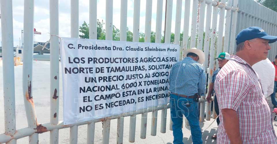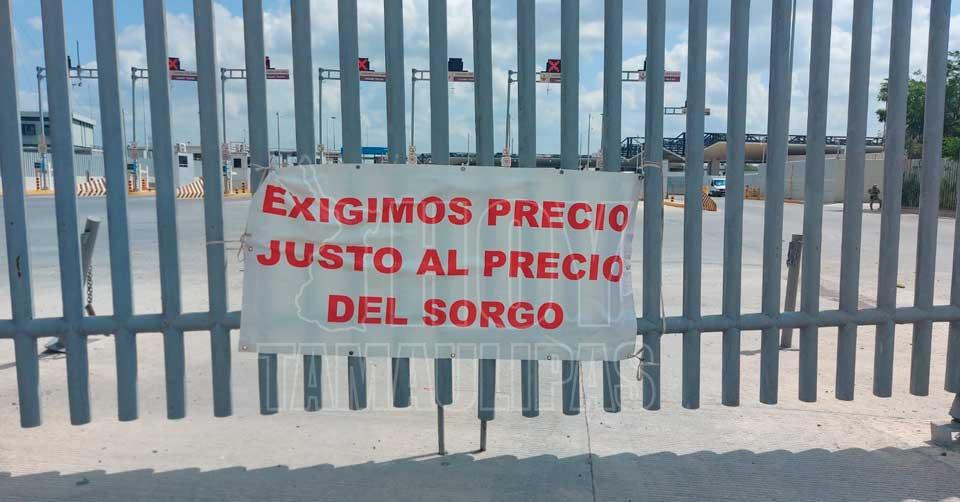 Reynosa, Tamaulipas. - Ante la falta de diálogo y soluciones a sus demandas, productores de sorgo del norte de Tamaulipas volvieron a bloquear este viernes el Puente Internacional Reynosa-Pharr.