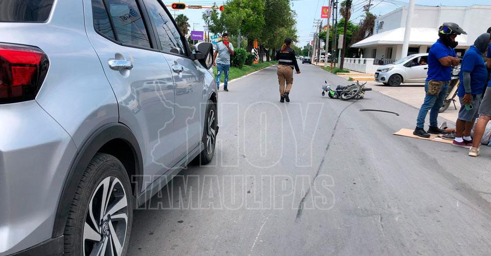 Ciudad Victoria, Tamaulipas. – Un repartidor en motocicleta resultó lesionado la tarde de este sábado tras ser embestido por una camioneta en la intersección de la Avenida Tamaulipas y calle Coahuila, en pleno sector del 8 en Ciudad Victoria.