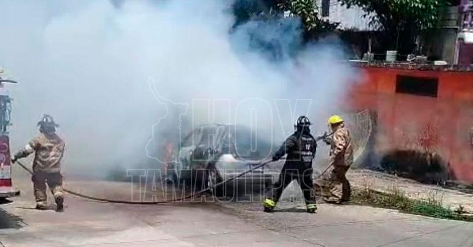 Al lugar arribaron elementos del Cuerpo de Bomberos Tampico que encontraron al vehículo envuelto en llamas, mientras que Voluntarios de la Zona Sur apoyaban con la vialidad para el mejor trabajo del personal contraincendios.
