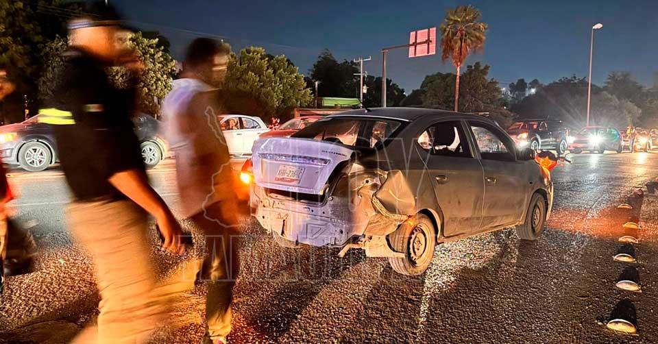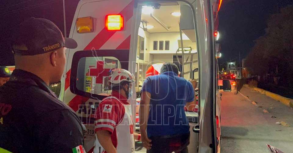 Ciudad Victoria, Tamaulipas.– Una mujer resultó lesionada la noche de este sábado, luego de que la motocicleta en la que viajaba junto a su pareja chocara por alcance contra un automóvil.