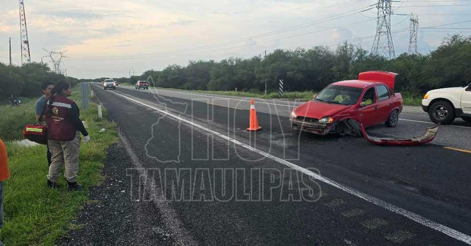 Villa de Casas, Tamaulipas. – Un choque entre dos vehículos tipo Sedán, registrado sobre la carretera Zaragoza–Victoria, dejó como saldo dos personas lesionadas y daños materiales considerables. Además, mientras se atendía este incidente, un motociclista se distrajo al pasar por la zona y también resultó herido tras perder el control y caer en un arroyo.