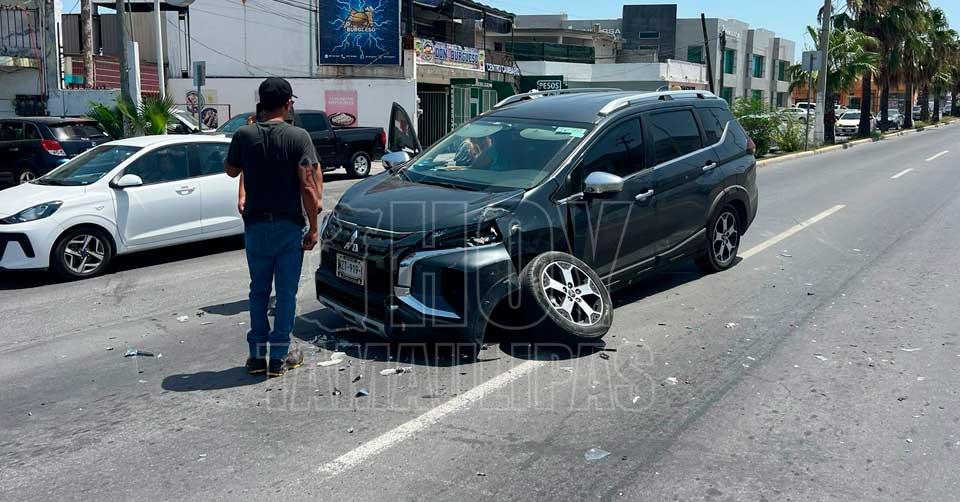 Reynosa, Tamaulipas. - Un aparatoso accidente vial se registró en el Bulevar Morelos de Reynosa, alrededor de las 15:00 horas de hoy. Dos conductores se vieron involucrados en el percance, que ocurrió a la altura de la colonia Rodríguez.