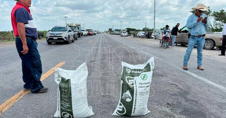 Productores de San Fernando reactivan bloqueo en la carretera Matamoros-Victoria