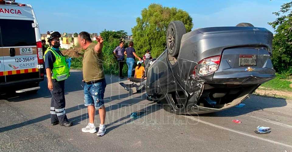 Choque múltiple y volcadura en Tampico dejó a varias personas lesionadas