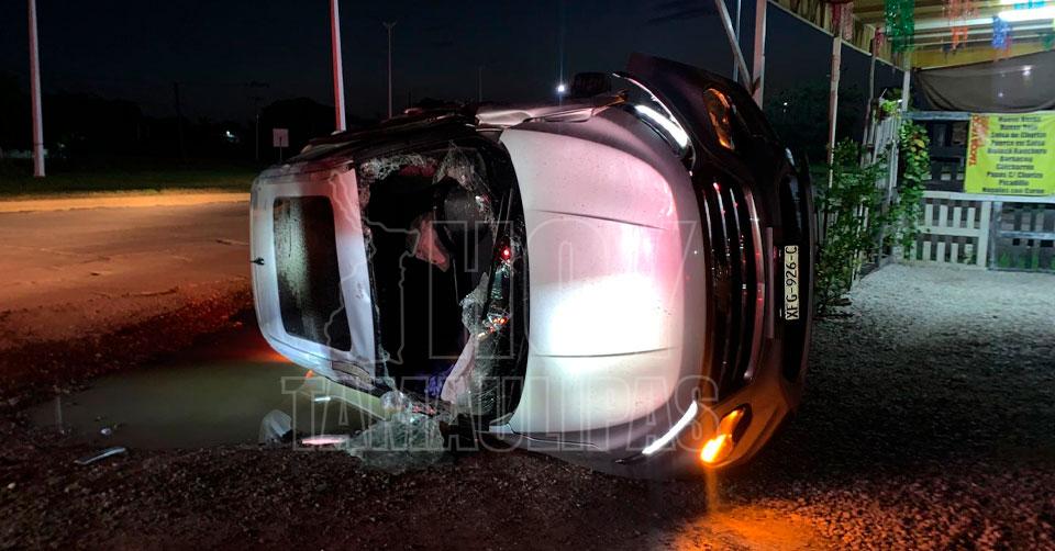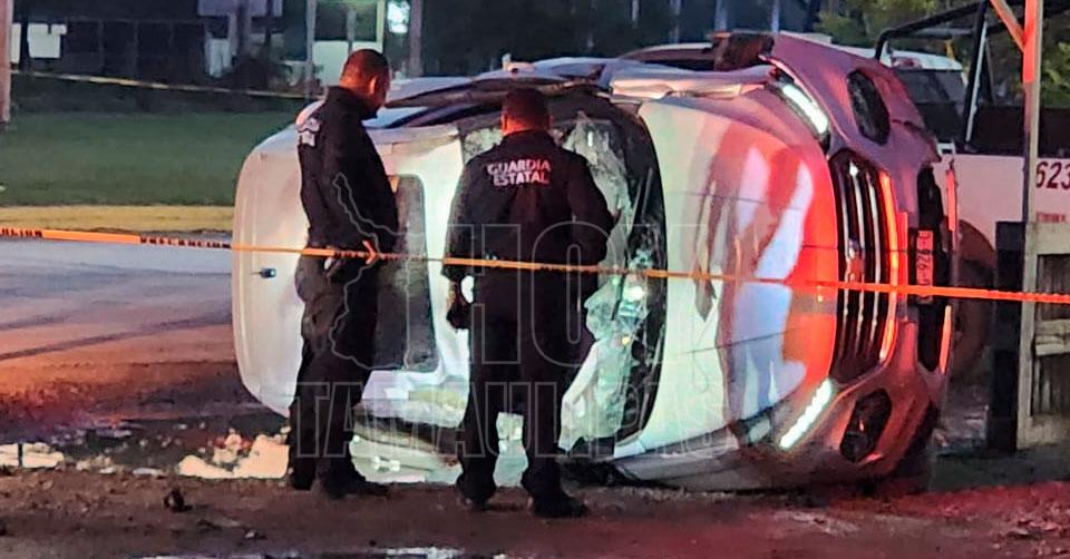 El Mante, Tamaulipas. - Una volcadura de un vehículo registrada la madrugada de este sábado en El Mante dejó como saldo la muerte de un elemento de la Guardia Estatal activo, así como dos jóvenes lesionadas y la fuga de otro agente involucrado.