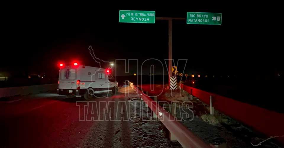 Reynosa, Tamaulipas.– La noche de este sábado, un hombre perdió la vida tras un accidente registrado en el libramiento al Puente Internacional Reynosa-Pharr, a la altura del puente del Caracol y la carretera a Río Bravo.