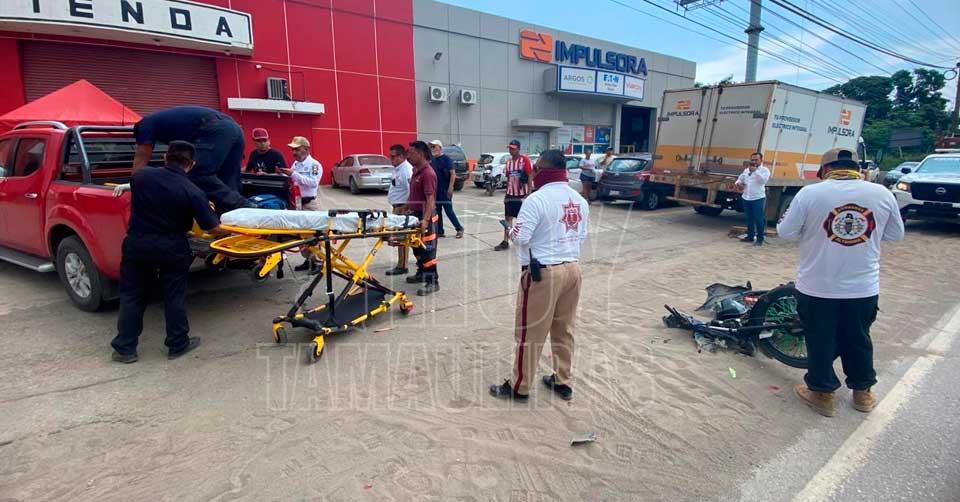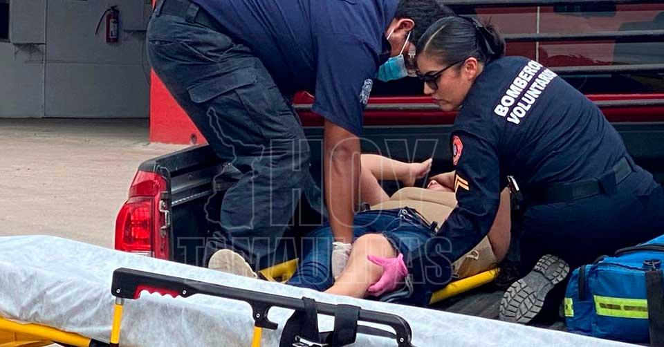 Fue así como cortó el paso de la moto que se estrelló en la caja, saliendo la pareja que la tripulaba despedida contra el pavimento, resultando con la peor parte la mujer al sufrir lesión en su pierna izquierda, misma que fue atendida por brigadistas de la base Bomberos Voluntarios de Tamaulipas y trasladada a un hospital, en tanto el personal vial se encargó de deslindar responsabilidades en el percance.