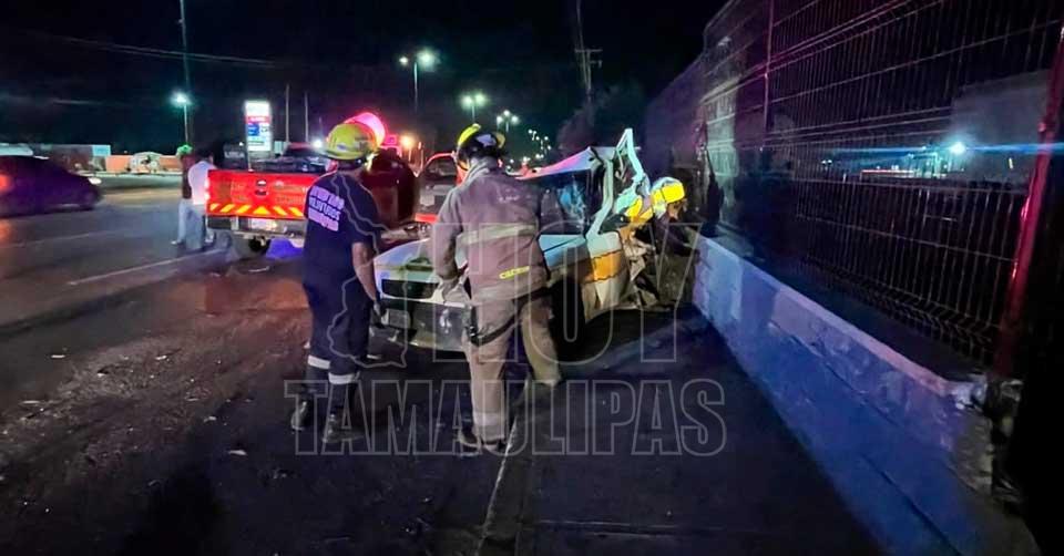 Al lugar acudieron elementos de Bomberos Voluntarios de Tamaulipas, quienes brindaron los primeros auxilios al conductor del taxi y lo trasladaron a un hospital.